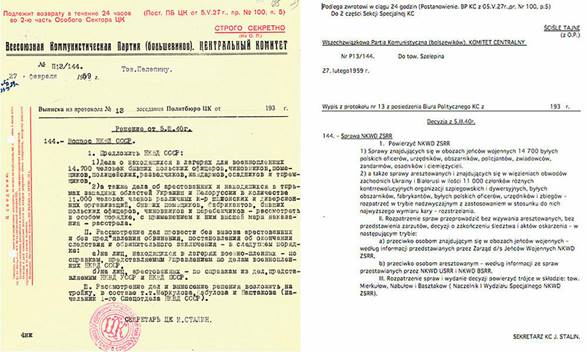 Die russische Staatsanwaltschaft veröffentlichte 2004 die Ergebnisse ihrer Ermittlungen. In dem Bericht hieß es, dass das Massaker von Katyn auf Befehl von Lawrentij Berija, dem Chef des NKWD der UdSSR, durchgeführt wurde. Der Bericht enthielt auch Angaben über Ort und Zeit der Hinrichtung sowie Listen der Getöteten.