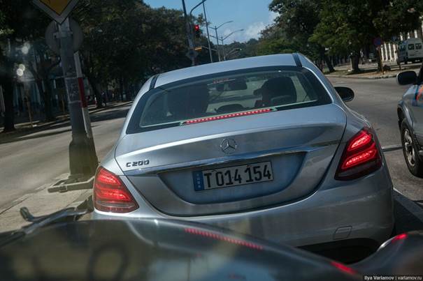 Ein blauer Streifen mit der Aufschrift “Cuba” auf dem Nummernschild bedeutet, dass der Wagen in Staatsbesitz ist. Der Buchstabe T wird für touristische Zwecke eingeführt. Ausländische Diplomaten und Geschäftsleute haben das Recht, ihr Auto mitzubringen. Aber wenn sie ihr Geschäft in Kuba beendet haben, können sie es nicht mehr verkaufen.