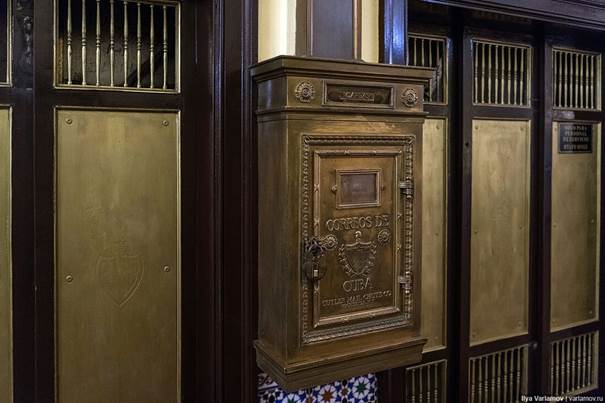 Briefkasten im Hotel. Es gibt einen Briefdraht von oben dazu! Briefe konnten aus allen Stockwerken geworfen werden;)