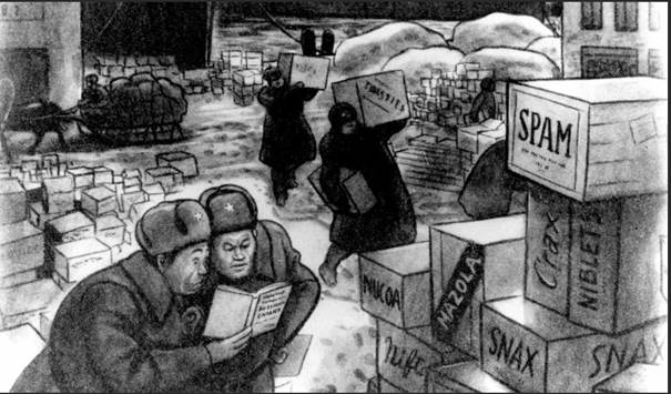 Insgesamt importierten die Alliierten während des Krieges mehr als zwei Milliarden Dosen Fleischkonserven mit einem Gesamtgewicht von 664.000 Tonnen in die UdSSR, was für die Reserven der Roten Armee eine sehr gute Hilfe darstellte. Der amerikanische Eintopf half den sowjetischen Truppen, sich in den schwierigen Kriegsjahren zu ernähren, und wurde zu einer Art Symbol für diesen Krieg. Aufgrund von Schwierigkeiten mit der Logistik blieb dieser Eintopf auch nach dem Sieg in Lagerhäusern, so dass er in den Nachkriegsjahren manchmal auf dem Tisch der einfachen Bürger landete.