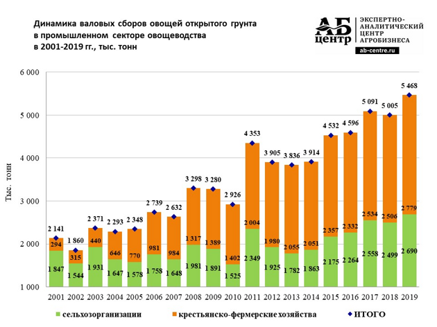 Vegetable production in Russia – data from the expert analytical center of agribusiness.
