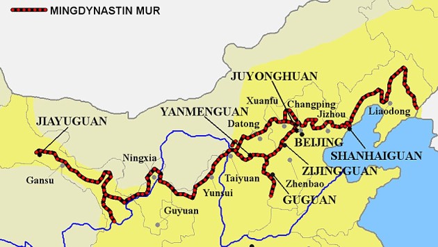 Die Chinesische Mauer auf der Landkarte Chinas