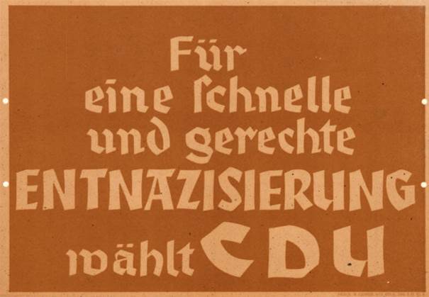 German election poster from 1947: “For quick and fair denazification, vote for the CDU” The poster looks faded, like the entire German democracy of that time