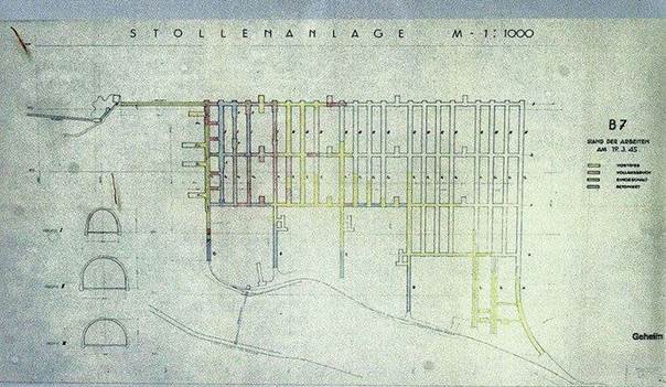Im Jahr 1944 wurden etwa hundert solcher Unternehmen gegründet. Für den Bau einiger von ihnen wurde nicht einmal ein Berg benötigt. Zum Beispiel war geplant, die Massenproduktion desselben Me.262 (bis zu 1200 Einheiten pro Monat) in sechs riesigen Fabriken zu organisieren, von denen sich nur eine unter dem Berg befand. Bei den anderen fünf handelte es sich um halbunterirdische fünfstöckige Bunker mit einer Länge von 400 Metern und einer Höhe von 32 Metern.