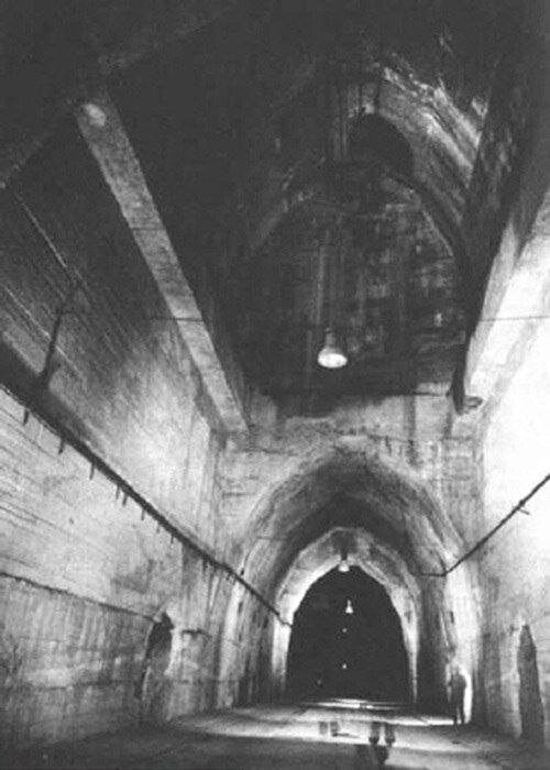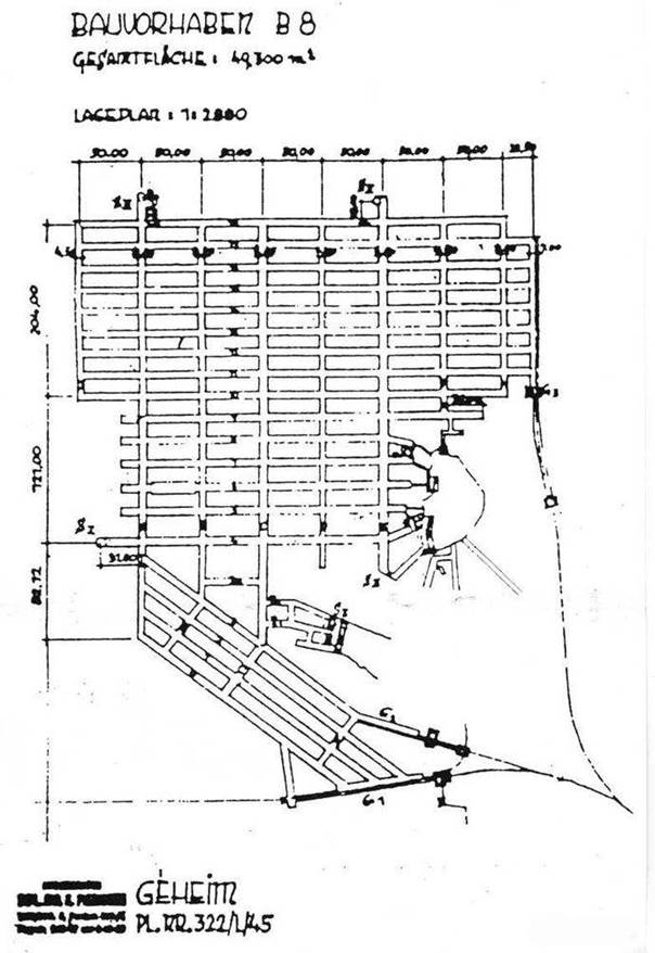 Bauarbeiter aus mehreren benachbarten Konzentrationslagern konnten nur sieben der geplanten zwölf Bögen errichten. Von den 8.500 Gefangenen überlebten 3.000 den Bau nicht. Nach dem Zweiten Weltkrieg beschloss die US-Besatzungsverwaltung, den unvollendeten Bunker in die Luft zu sprengen, aber die 125 Tonnen Dynamit reichten nicht aus, um einen der Bögen zu zerstören.