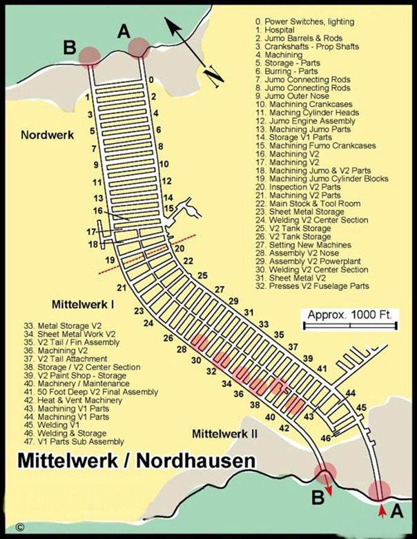 Im April 1945 besetzten US-Truppen Nordhausen und Mittelwerke. Dieses Gebiet wurde später Teil der sowjetischen Einflusszone, und drei Monate später wurden die Amerikaner durch sowjetische Spezialisten ersetzt. Boris Chertok, eines der Mitglieder der wissenschaftlichen Delegation, die in das Unternehmen kam, um die Raketenexperimente der Nazis zu studieren, wurde später Akademiker und einer der engsten Mitarbeiter von Sergej Koroljow. Er hat interessante Erinnerungen an seinen Besuch in der Fabrik:  “Der Haupttunnel für die Montage der V-2-Raketen war mehr als 15 Meter breit, und die Höhe erreichte in einigen Spannweiten 25 Meter. In den Querstrecken wurden die Herstellung, Montage, Eingangskontrolle und Prüfung von Baugruppen und Baugruppen vor deren Einbau auf die Hauptbaugruppe durchgeführt.