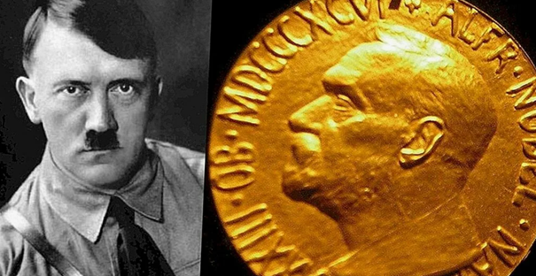 Hitlers Friedenspreis wurde von Erik Brandt, einem Mitglied des schwedischen Parlaments, persönlich befürwortet. Und nach einer Version hat der Führer den Nobelpreis nur aus einem unbedeutenden Grund nicht erhalten – er hat den Zweiten Weltkrieg im September 1939 begonnen:) Hätte ich den Einmarsch in Polen ein wenig hinausgezögert, hätte ich ihn bekommen. Wie würde eine solche Auszeichnung aussehen?