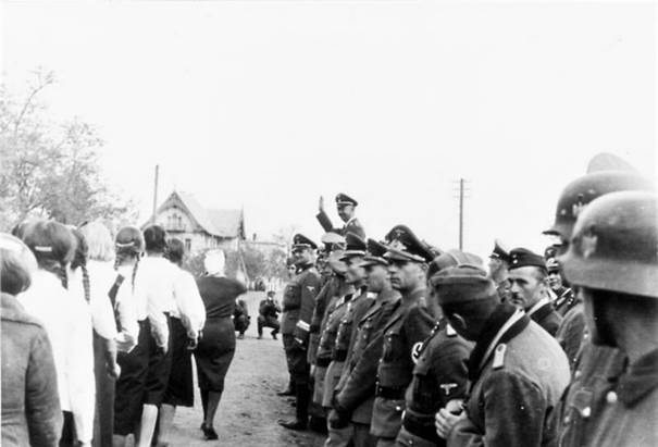 Reichsführer-SS Himmler gratuliert den deutschen Frauen zur Ankunft im Sondergebiet Hegewald