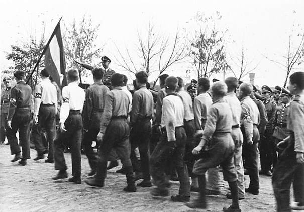 Und das ist die Parade der männlichen Kolonisten vor Himmler an der gleichen Stelle in der Ukraine