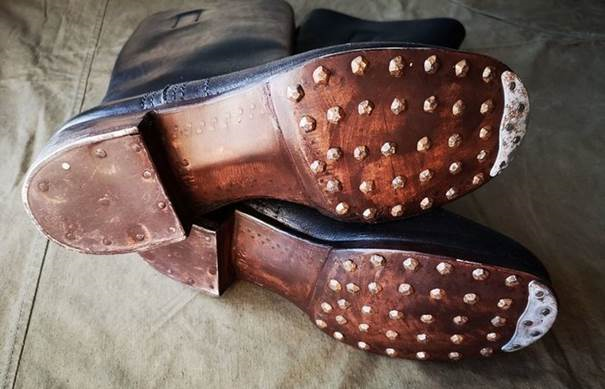 During World War II, the vast majority of German soldiers wore so-called “Marschstiefel” (hiking boots), made of cowhide and abundantly nailed to improve the grip of the sole on the surface. In addition to the massive nails themselves, such boots were also accompanied by “horseshoes”, which had to be installed with the onset of cold weather. All this “happiness” was supposed to increase the stability of the fighter, as well as increase the resource of the boots, protecting them from wearing out too quickly.
