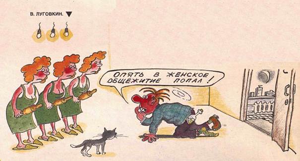 Women’s Dormitory, Rush Hour and Sausage in Viktor Lugovkin’s Caricatures