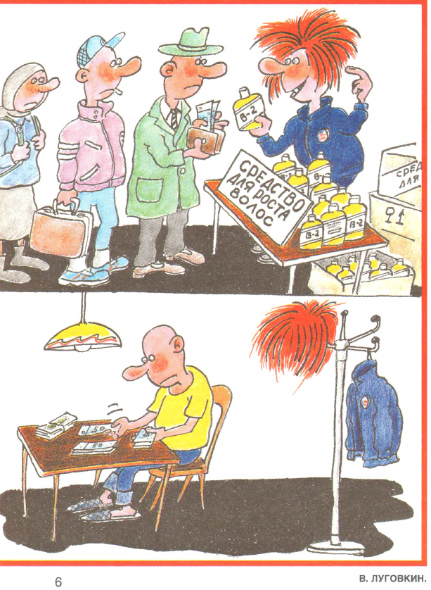 The variety of characters is not inferior to the variety of plots. Lugovkin is one of the few authors who does not have long comic cycles. This means that you can watch his caricatures from any place and not think about the beginning, plot, plot and denouement. It turns out to be a simple, easy and convenient reading without unnecessary thoughts and moralizing.