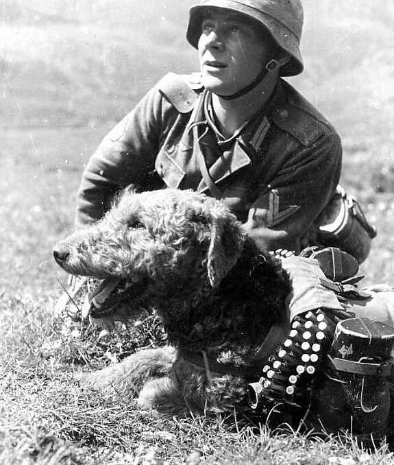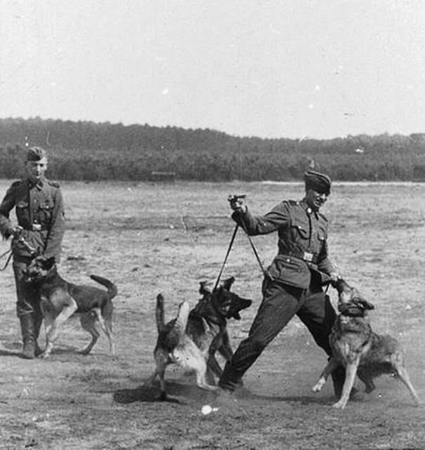 Each SS guard regiment already had a company of dog handlers with dogs. Dogs were also used in the Luftaffe and Kriegsmarine units (mainly to guard airfields and naval bases).