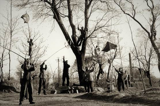 Zuerst wurden kleine Vögel geködert und gefangen, indem man ihnen Schlingen anlegte. Diese Methoden führten nicht zu den Ergebnissen, die sich die Chinesen erhofft hatten. Dann beschlossen sie, sie “verhungern” zu lassen. Fakt ist, dass ein Spatz nicht länger als 15 Minuten in der Luft bleiben kann. Sobald der Vogel in Sicht eines Mannes, einer Frau oder eines Kindes kam, erschrak er und zwang ihn, sich in die Luft zu erheben. Jeder, von jung bis alt, war damit beschäftigt, und Lumpen, Töpfe, Geschrei und Pfeifen wurden benutzt, um in Ungnade gefallene Schädlinge einzuschüchtern. Der Vogel, der den Grund dieser Gewandtheit nicht verstand, flitzte ängstlich von Ort zu Ort, bis er erschöpft zu Boden fiel. Sie wurde getötet und in den allgemeinen Haufen derselben armen Kerle gebracht. Wie zu vermuten ist, waren nicht nur Spatzen betroffen, sondern auch alle kleinen Vögel.