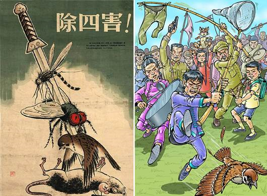 Im Rahmen des Programms “Großer Sprung nach vorn” wurde auf dem nächsten Parteitag der Kommunistischen Partei Chinas im Winter 1957 der Vorschlag unterbreitet, eine groß angelegte Kampagne zur Ausrottung der Spatzen zu starten. Diese Initiative wurde von Zhou Jian, dem stellvertretenden Bildungsminister, ins Leben gerufen. Er glaubte, dass, wenn Ratten und Spatzen vom Gesicht des Landes getilgt würden, Chinas Landwirtschaft in eine Ära beispiellosen Wachstums und Wohlstands eintreten würde. Um dem Ganzen die Krone aufzusetzen, gab es noch ein weiteres brillantes Argument: Die Chinesen sind unterernährt, weil gefräßige Vögel sie “auf den Feldern fressen”.