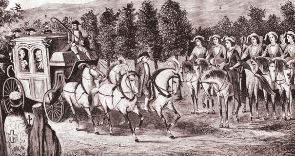 The Balaklava Amazons came up with a masquerade outfit: “skirts made of crimson velvet, trimmed with gold galloon and gold fringe, jackets of green velvet, also trimmed with gold galloon; on their heads are turbans of white haze, embroidered with gold and sequins, with white ostrich feathers.” They were even armed: they were given a rifle and three blank cartridges each. Not far from Balaklava, the Empress, accompanied by Joseph II, made a review of the Amazons. “There was an avenue of laurel trees, strewn with lemons and oranges,” etc.
