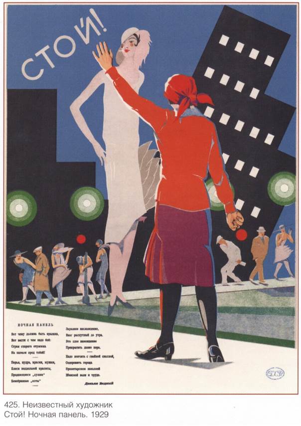 Die Qualität und Quantität der Plakate nimmt zu, die Autoren verwenden eine technische Neuheit: die Fotomontage. Eine handwerkliche Herstellung ist nicht mehr möglich, alle Druckerzeugnisse müssen von der Zensur von Glavlit oder Gosizdat genehmigt werden. Ein solches Plakat weckt jedoch nicht mehr das Interesse, das für das Plakat des vergangenen Jahrzehnts charakteristisch ist.