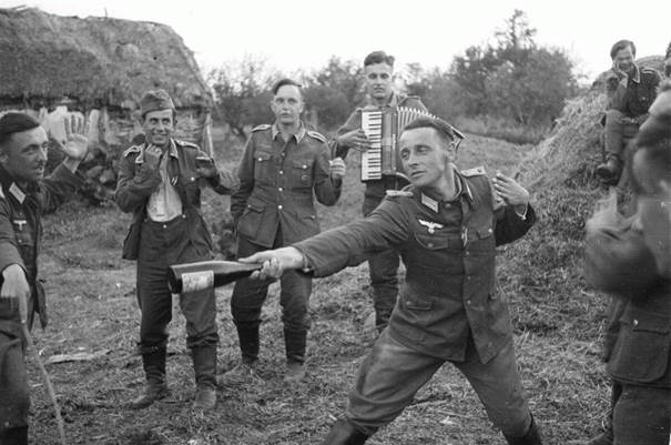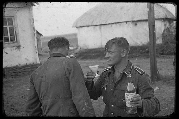 “An der Front hatten wir so viel Wodka, Schnaps und Schnaps wie Maschinengewehre und Patronen für sie. Auf diese Weise war es einfacher, aus jedem Soldaten einen Helden zu machen. Tatsache ist, dass Alkohol das Gehirn abstumpft und den Anschein erweckt, dass Kraft hinzugefügt wird. Zwei Tage hintereinander schwelgst du dem alkoholischen Vergessen und erinnerst dich nicht mehr an deine Wunden, du gehst wieder zum Angriff über.” (Guy Sayer, “Der letzte Soldat des Dritten Reiches”).