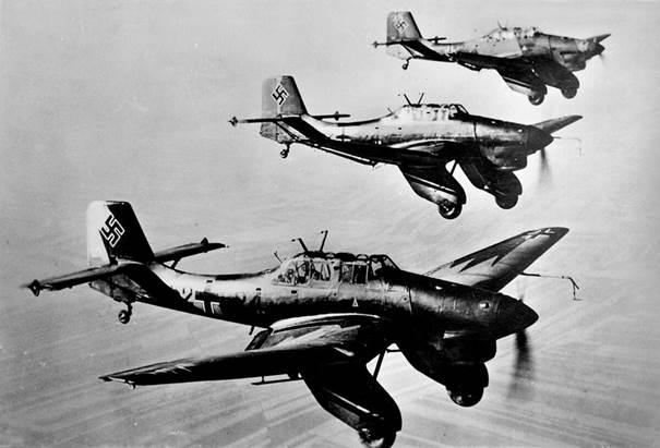Hauptmann Walter Siegel, Kommandant einer Fluggruppe von 26 Sturzkampfbombern, leitete persönlich die Formation der Gruppe. Links und rechts von ihm befanden sich die Flugzeuge seines Adjutanten und seines technischen Unterstützungsoffiziers. Alle drei Staffeln flogen in enger Formation hinterher: erst die 2., dann die 3. und erst dann die 1. Staffel unter Oberleutnant Dietrich Peltz.