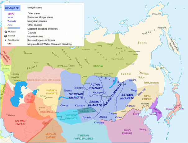 Map of Asia for 1636 – the moment of the proclamation of the Qing Empire.