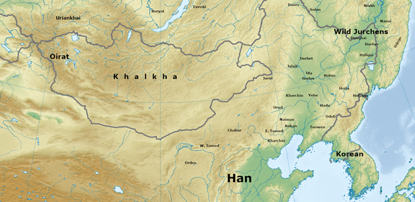 Map of the settlement of the Jurchen tribes by the end of the XVI century.