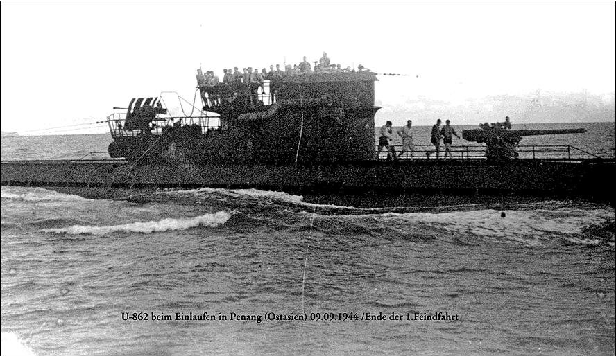 Es war U-862 der IXD-2-Serie, solche Boote konnten 23.700 Meilen mit 12 Knoten zurücklegen, was 2000+ Meilen mehr ist als die Länge des Äquators, 230 Meter tauchen und 24 Torpedos an Bord tragen.