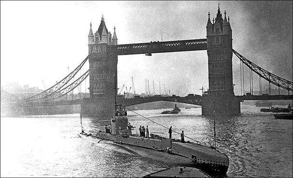 Initially, Timm, like the other aces – Prine, Luth or Hardegen, who was generally a pilot at first – served in the surface fleet. And he distinguished himself here. The British submarine HMS Starfish tried to attack the minesweeper M-7, which he commanded. Here is this boat on the Thames: