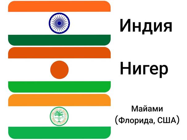Im Allgemeinen ist die Flagge Indiens ziemlich einzigartig, es ist unwahrscheinlich, dass sie mit der Flagge eines anderen Landes verwechselt wird. Obwohl etwas Ähnliches wie die Flagge von Niger, Miami, Florida in den Vereinigten Staaten.