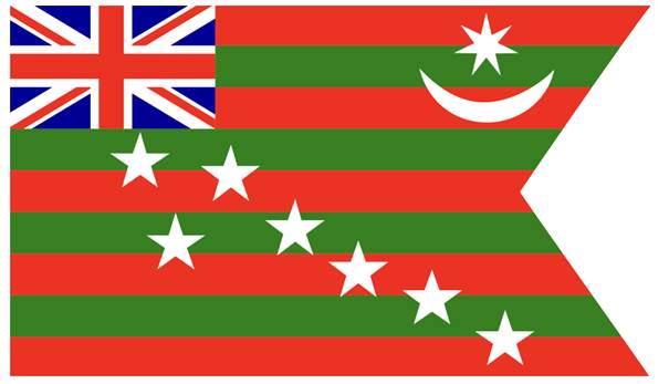 At that time, India had the status of a British colony, its flag consisted of a small image of the flag of Britain, located on a “striped” red-green background, as well as a white triangle, a star with a crescent moon, and seven other stars.