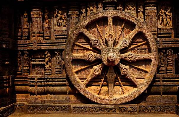 The current official flag of India was approved in 1947. It depicts three stripes of different colors and some kind of round thing in the center. What is this mysterious object? The sun? Wheel? Or some Hindu symbol?