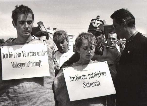 Blonde SS-Jungs führten sie mit Plakaten um den Hals durch die Straßen, auf denen so etwas stand wie: “Ich bin mit einem Juden zusammen.” Und sie gingen tatsächlich hinauf und überprüften, ob eines der Paare, die durch die Straßen gingen, ein verdächtiges Aussehen hatte.