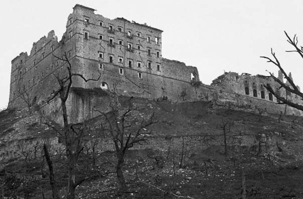 Eine alte Klosterruine auf dem Monte Cassino. Er war Teil der Verteidigungskette der deutschen “Gustav-Linie”. Hier wurden die Alliierten im Winter 1944 für längere Zeit aufgehalten. Sie kamen bereits im Juni 1944 in Rom an, nach langen und kräftezehrenden Kämpfen mit den Deutschen, die sich gut zu verteidigen wussten