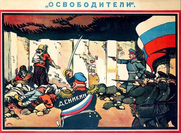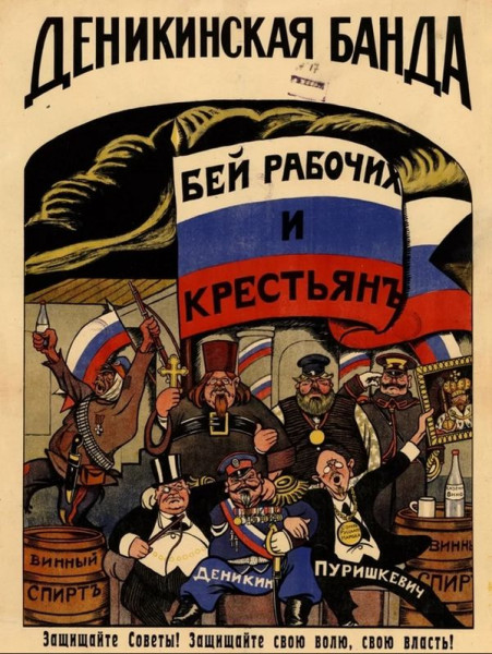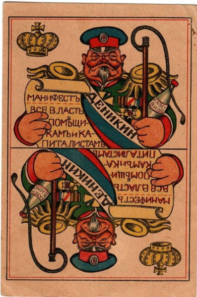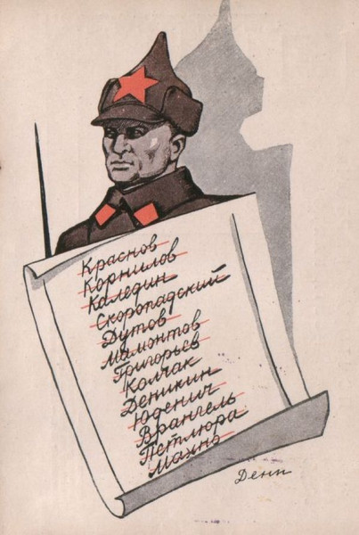 Die Geschichte ist überhaupt nicht originell, genau derselbe Titel würde zu den Biografien des Präsidenten der Akademie der Künste der UdSSR Boris Ioganson (ein ehemaliger Offizier der Weißen Armee, wenn überhaupt), Dmitri Moor, Konstantin Rotov und sogar Boris Jefimow passen, der seine erste Zeichnung während der Herrschaft von Nikolaus II. und die letzte unter Wladimir Putin veröffentlichte. Aber wir sprechen nicht von ihnen, sondern von dem nicht minder berühmten Künstler Denis oder Viktor Nikolajewitsch Denissow (1893-1946). Er wurde am 8. März (24. Februar) 1893 geboren. 1917 war Denis ein glühender Gegner der Bolschewiki und zeichnete äußerst böse Karikaturen von ihnen. Etwa so: