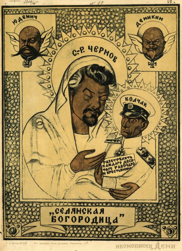 Die Dorfmutter Gottes (eine Karikatur des Führers der Sozialrevolutionären Partei Viktor Tschernow, der 1917 als “Dorfpfarrer” bezeichnet wurde)