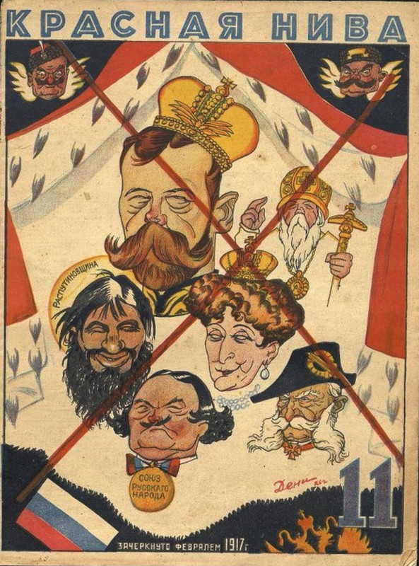 Wir schreiben das Jahr 1927. “Im Februar durchgestrichen.” Titelseite der Zeitschrift Krasnaja Niwa, die dem 10. Jahrestag der Februarrevolution gewidmet ist