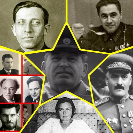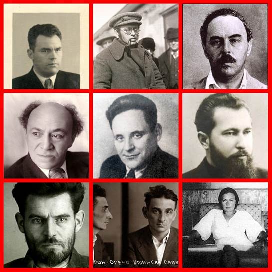 Hier sind nur einige von denen, die auf Befehl Stalins liquidiert wurden (von links nach rechts und unten): Bovkun-Luganets, Radek, Sokolnikow, Michoels, Golubow (mit ihm als Zeuge liquidiert), Romzha, Shumsky, Oggins und Kira Simonich-Kulik