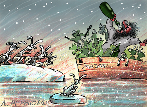 But don’t think that the author’s comics are boring and bilious politics, he makes it funny, “popular”. Merinov’s view of Russia is an amazing world of laughter, brightness and shameless boasting, not of virtues, but of flaws.