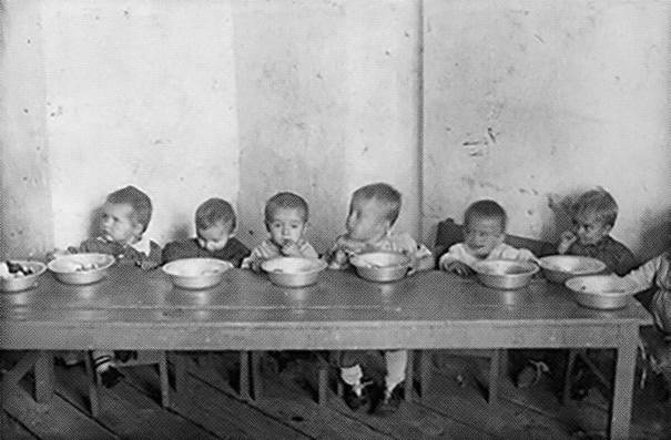 From the memoirs of former prisoner Hava Volovich: “A group of seventeen children relied on one nanny. She had to clean the ward, dress and wash the children, feed them, heat the stoves, go to all sorts of subbotniks in the prison and, most importantly, keep the ward clean. Trying to make her work easier and find herself some free time, such a nanny invented all sorts of things… For example, feeding… From the kitchen, the nurse brought a hot porridge. Placing it in bowls, she snatched the first child she came across from the crib, bent his arms back, tied them with a towel to his body, and began to stuff hot porridge like a turkey, spoon by spoon, leaving him no time to swallow.