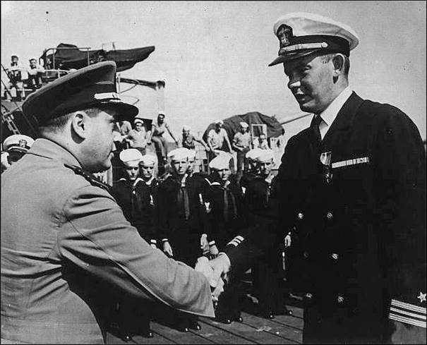 Die Auszeichnung fand Helden: Lieutenant Asbury H. Sullenger mit dem Navy Cross und Silver Star und Gunner James H. Hogan, der mit zwei Luftmedaillen ausgezeichnet wurde:
