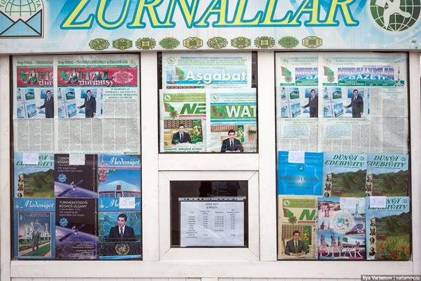 Tatsächlich ist das Gegenteil der Fall. Die Zeitungen veröffentlichen meist offizielle Berichte darüber, wie viel Getreide geerntet wurde, wie viel Gas gefördert wurde, wie gut alles ist und wie das Land die Demokratie aufbaut. Es gibt keine Berichte über Vorfälle und Probleme, die die Menschen dort betreffen. Alle wichtigen Neuigkeiten werden in der Regel vom Hörensagen übermittelt. Das von Turkmenbashi verhängte Importverbot ausländischer Druckerzeugnisse in das Land ist nach wie vor in Kraft.
