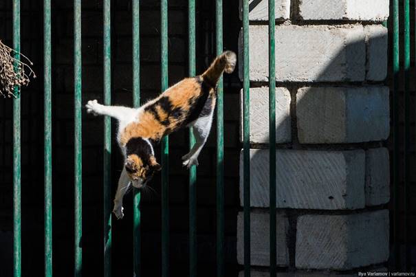 Eine Hauskatze fiel aus dem Fenster eines der Häuser in Turkmenbashi… Hoffentlich kann sie wieder hineinklettern, bevor sie von den Aasfressern entdeckt wird.